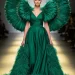 Redefine formal evening wear with an unexpected and luxurious element. This look from the runway is pure spectacle. A breathtaking one-shoulder gown in rich, emerald green velvet creates a dramatic and elegant silhouette.
