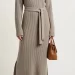 The coats are styled over monochromatic knitwear, from a ribbed dress to a sweater and wide-leg trousers. These soft, coordinating layers create a seamless and comforting feel. Simple accessories, like a creamy handbag and minimal gold jewelry, enhance the outfit’s understated elegance.