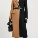 Both coats are paired with stylish accessories, including statement earrings, a sleek handbag, and pointed-toe boots. The two-tone trench is a great way to add visual intrigue to your outfit, while the black trench offers a strong, sophisticated statement. This is an excellent way to style a trench for a fashion-forward event or a gallery opening.